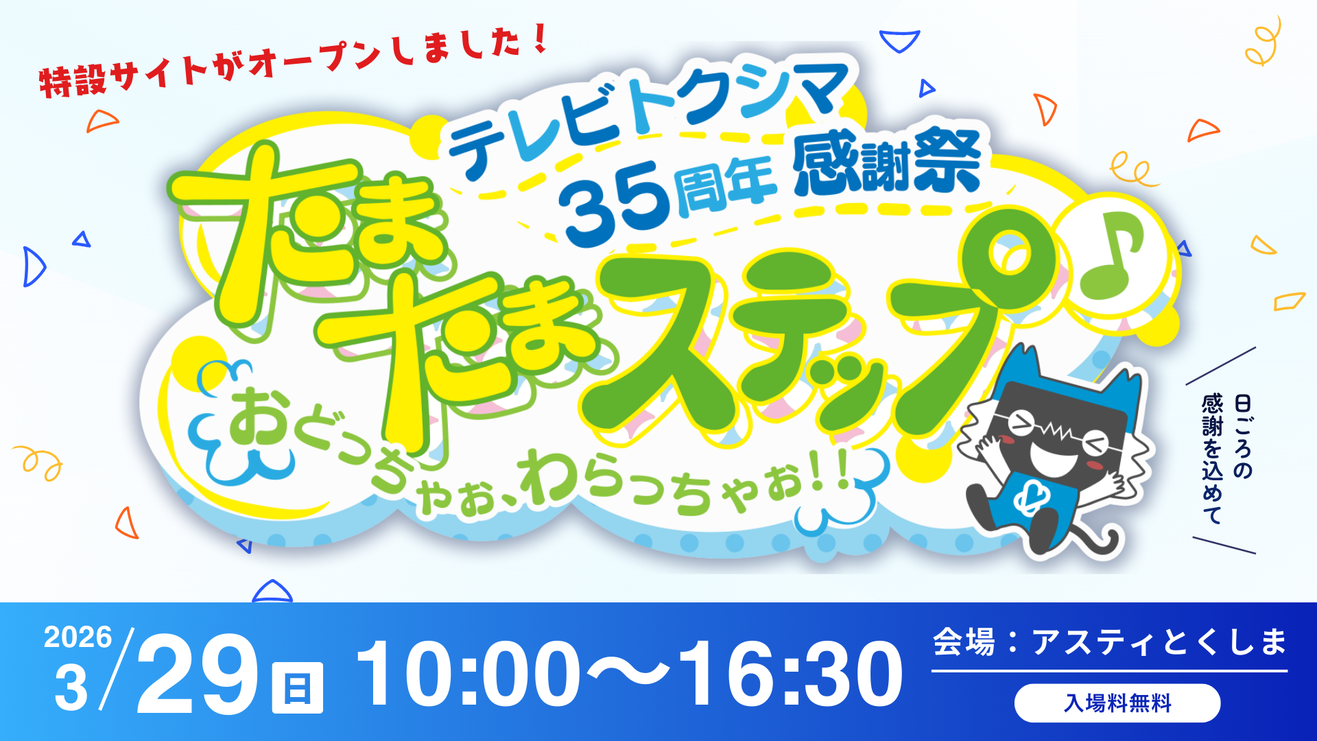 加入をご検討中の方 サービス提供エリア サービスのご案内 料金シミュレーションお申込み よくあるご質問 ご利用中のお客様 マイページ 各種お問い合わせ 加入者プレゼント よくあるご質問 今月のイチ押し 毎週 月・水・金曜12時~生放送 ステップ 1/19(月)9時、1/25(日) 16時ほか 四国大学吹奏楽部 第40回定期演奏会 1/21(水)9時~、1/23(金)14時~ほか 徳島商業高校吹奏楽部 第48回定期演奏会 その他の番組 最新情報 2026/1/21 お知らせ フジテレビNEXT(698ch)の料金改定について 2026/1/13 プレスリリース ~ テレビトクシマ 35周年 感謝祭 ~ 『たまたまステップ♪ おどっちゃぉ、わらっちゃぉ!!』開催のお知らせ 2026/1/8 メンテナンス情報 ライブカメラチャンネル(112ch)メンテナンスのお知らせ 2026/1/5 お知らせ 料金ご請求日のお知らせ 2025/12/22 お知らせ 「古着deワクチン」イベントについて(2025年11月20日から12月11日) 一覧へ